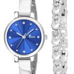 Analogue Blue Dial Silver Coloured Strap Women’s Watch with Cosmic Bracelet Combo for Girls
