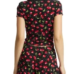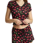 - Short-sleeved top with lace trimmed v-neck styling