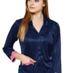 Be the first to review “Tiya Women’s Satin Plain/Solid Top and Pyjama Set (Navy Blue)”