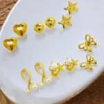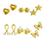 The radiant gold plating adds a touch of luxury and warmth, ensuring that these earrings are not only a fashion statement but also a timeless accessory for any occasion. The set includes an array of shapes, from classic rounds to contemporary geometric designs, providing versatility to complement various outfits and moods. Indulge in the beauty of diversity with this curated collection, allowing you to mix and match earrings to create a personalized and chic look.