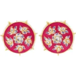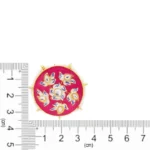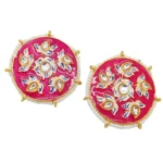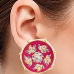 These exquisite gold-plated stud earrings showcase a harmonious blend of traditional artistry and contemporary elegance. Crafted with precision, the round design features a captivating pink Meenakari enamel, skillfully applied to create intricate patterns that add a touch of cultural richness. The vibrant pink hue serves as a striking backdrop for the delicate arrangement of white beads and Kundans, forming a captivating contrast that accentuates the overall allure.