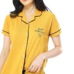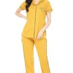 Be the first to review “Tiya”s Women’s Half Sleev Cotton Solid Plain Night Suit Set of Shirt & Pajamas(Yellow)”