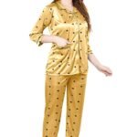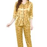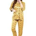 Be the first to review “Women All Over Dots Print Night Suit Shirt & Pajama Set (Gold)”
