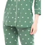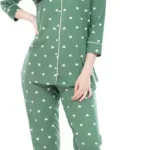Be the first to review “Women All Over Dots Print Night Suit Shirt & Pajama Set (Green)”